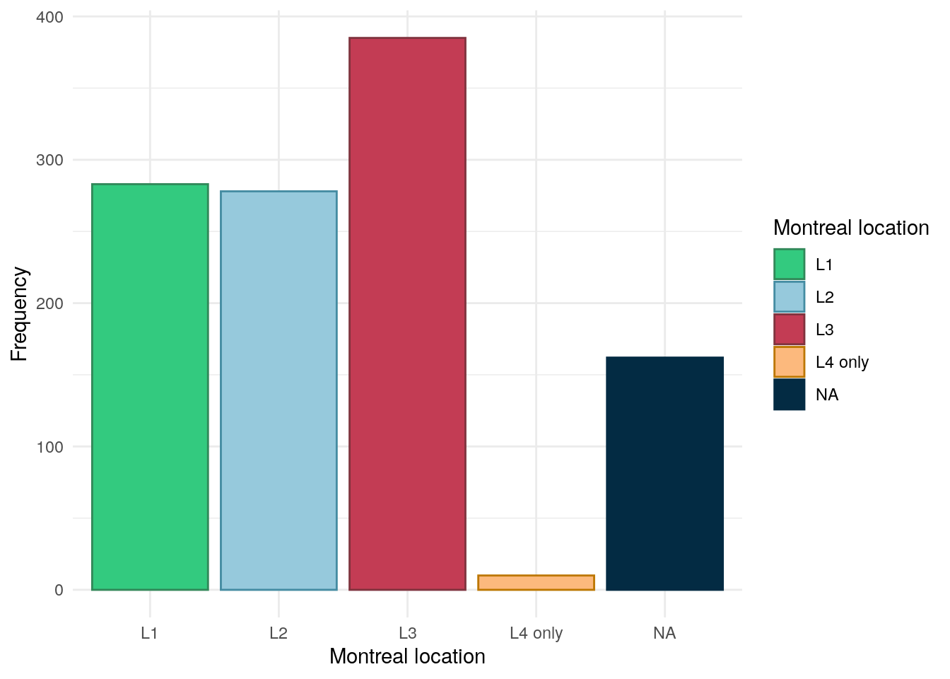 As can be seen in Figure 12, L3 is the most common Montreal location in this cohort with roughly an equal amount of subjects having either L1 or L2.