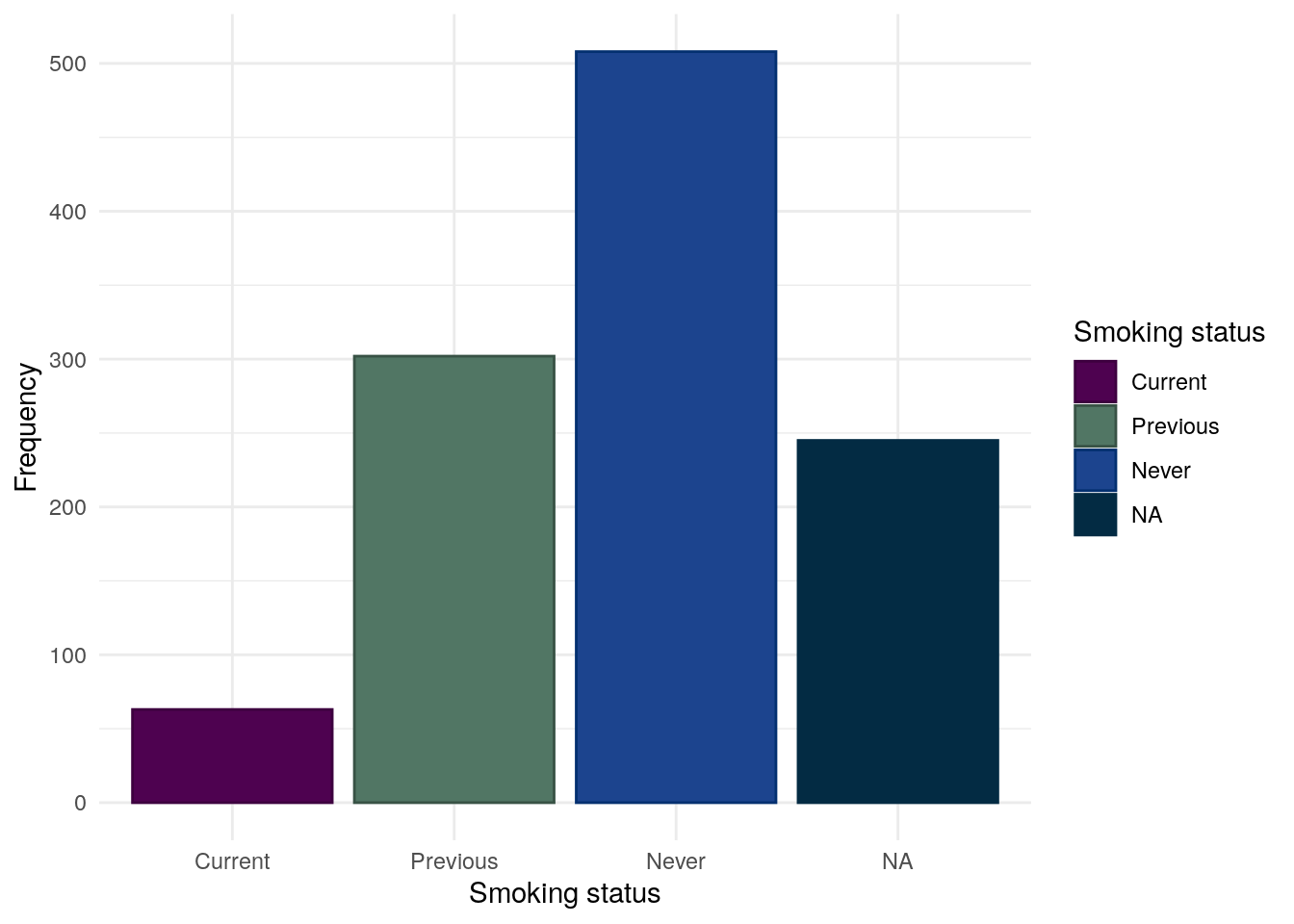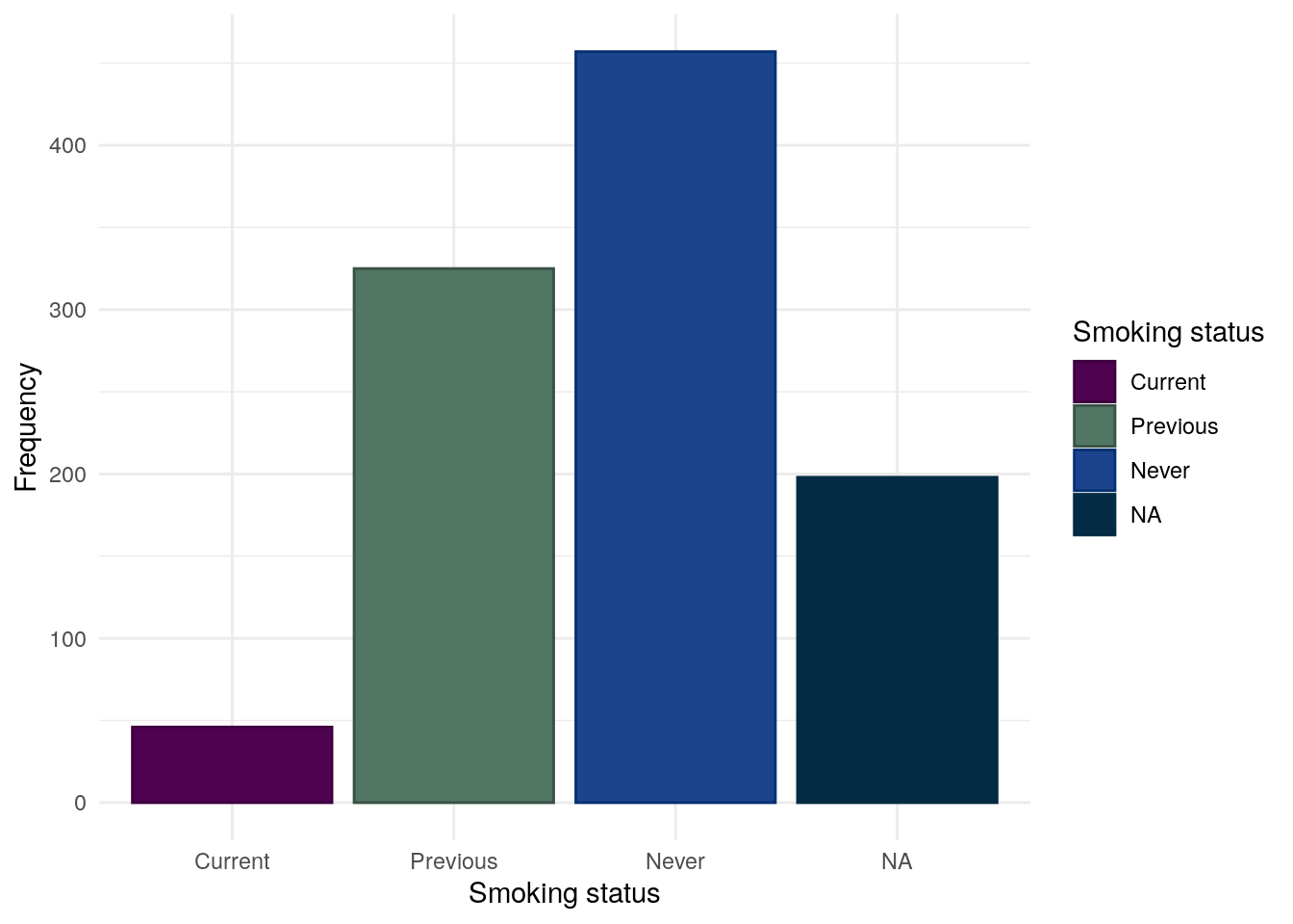 Whilst most subjects have never been a smoker, a substantial proportion of subjects (27%) have previously been smokers.