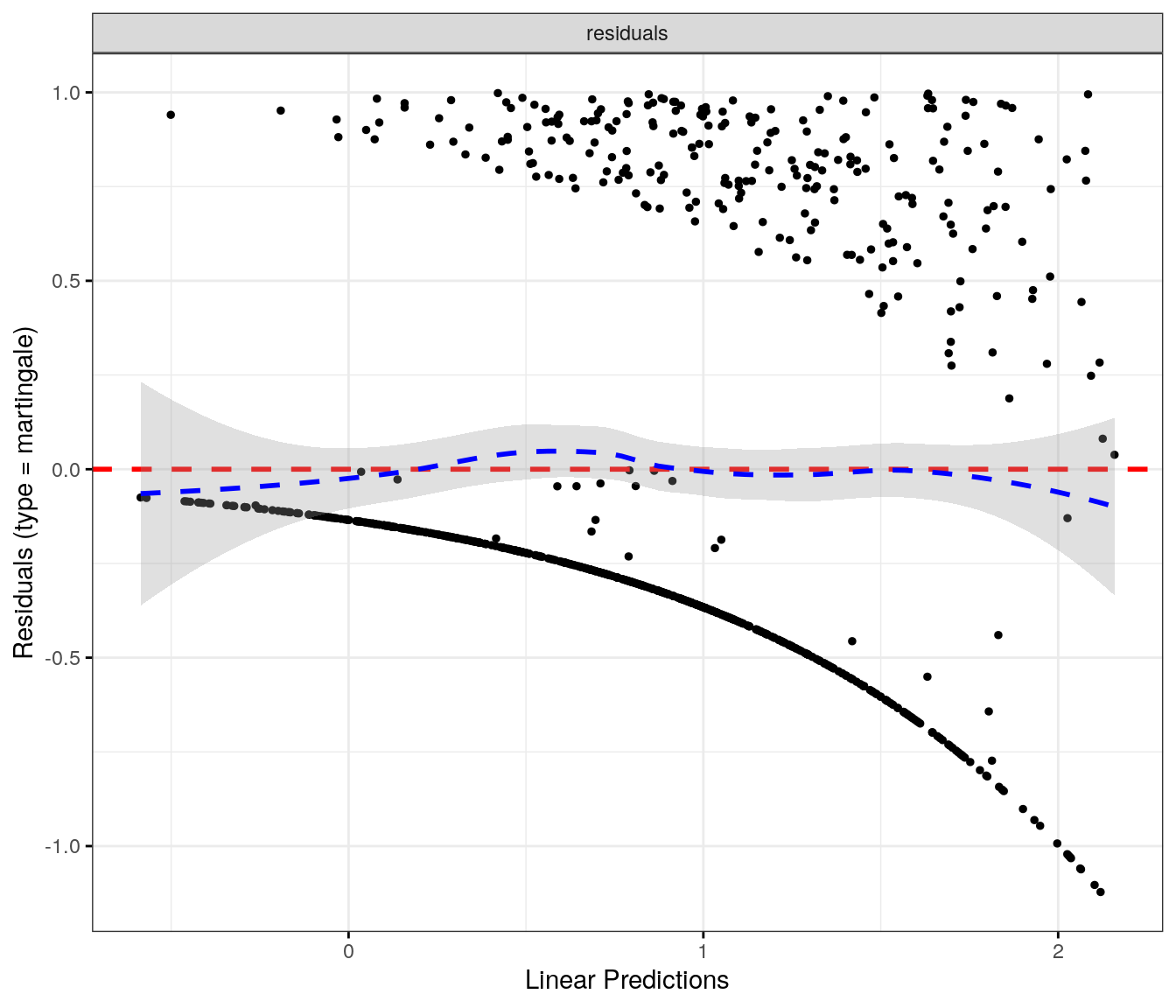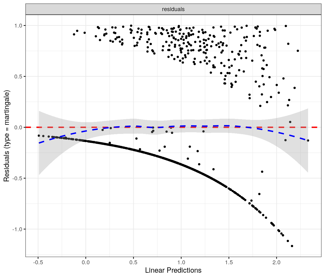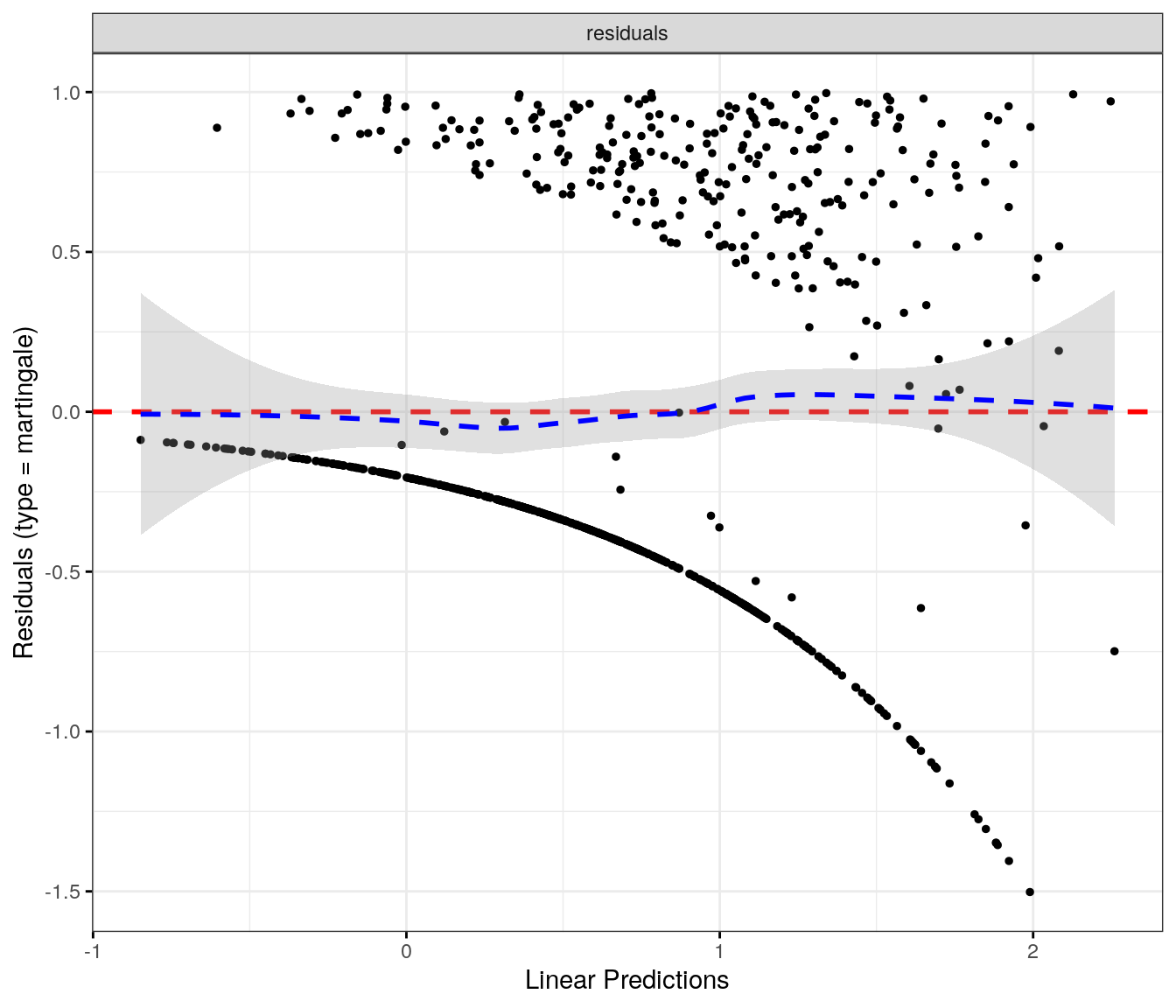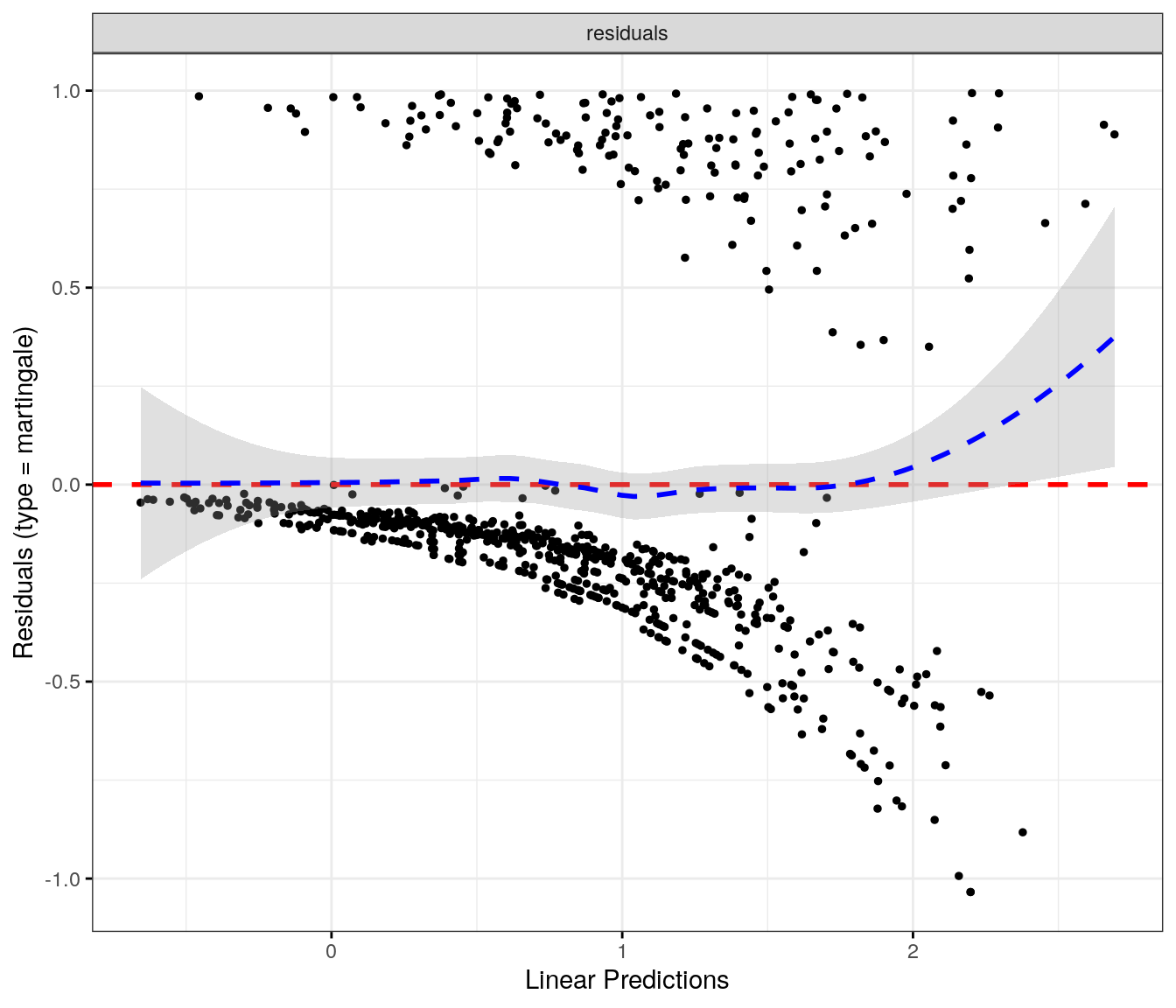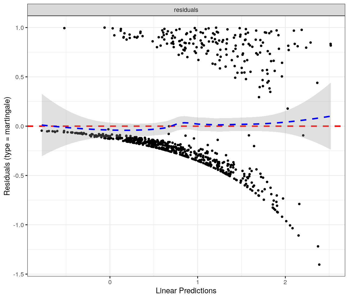fit.me<-coxph(Surv(softflare_time, softflare)~Sex+IMD+cat+`IBD Duration`+BMI+Treatment+Age+CReactiveProtein+frailty(SiteNo), control =coxph.control(outer.max =20), data =flare.cd.df)invisible(cox_summary(fit.me))