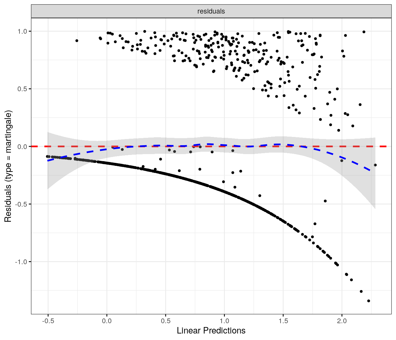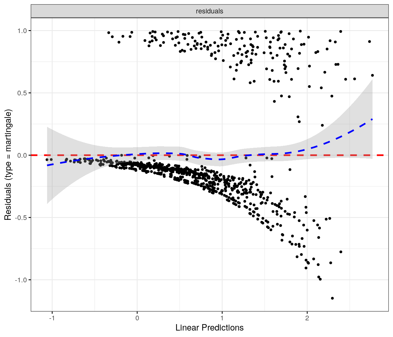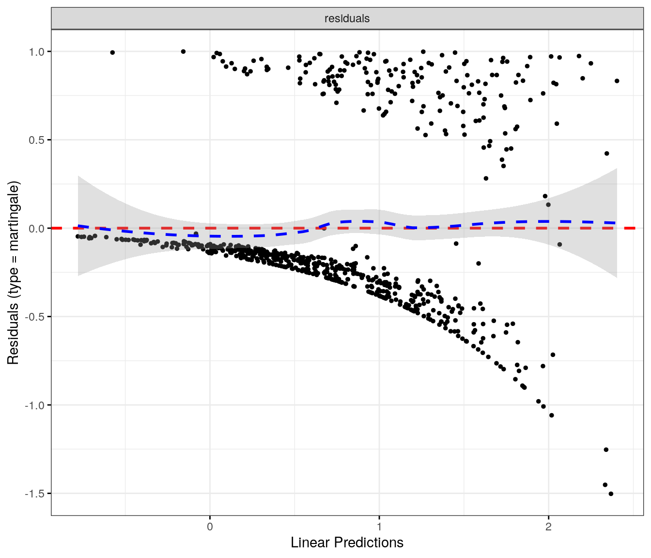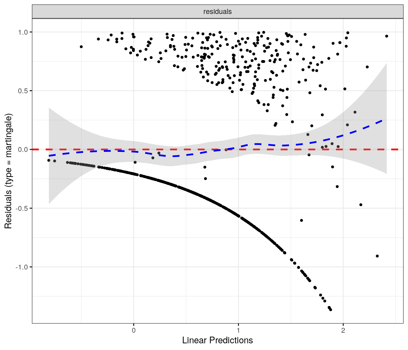fit.me<-coxph(Surv(softflare_time, softflare)~Sex+IMD+cat+`IBD Duration`+BMI+Treatment+Age+CReactiveProtein+frailty(SiteNo), control =coxph.control(outer.max =20), data =flare.cd.df)invisible(cox_summary(fit.me))