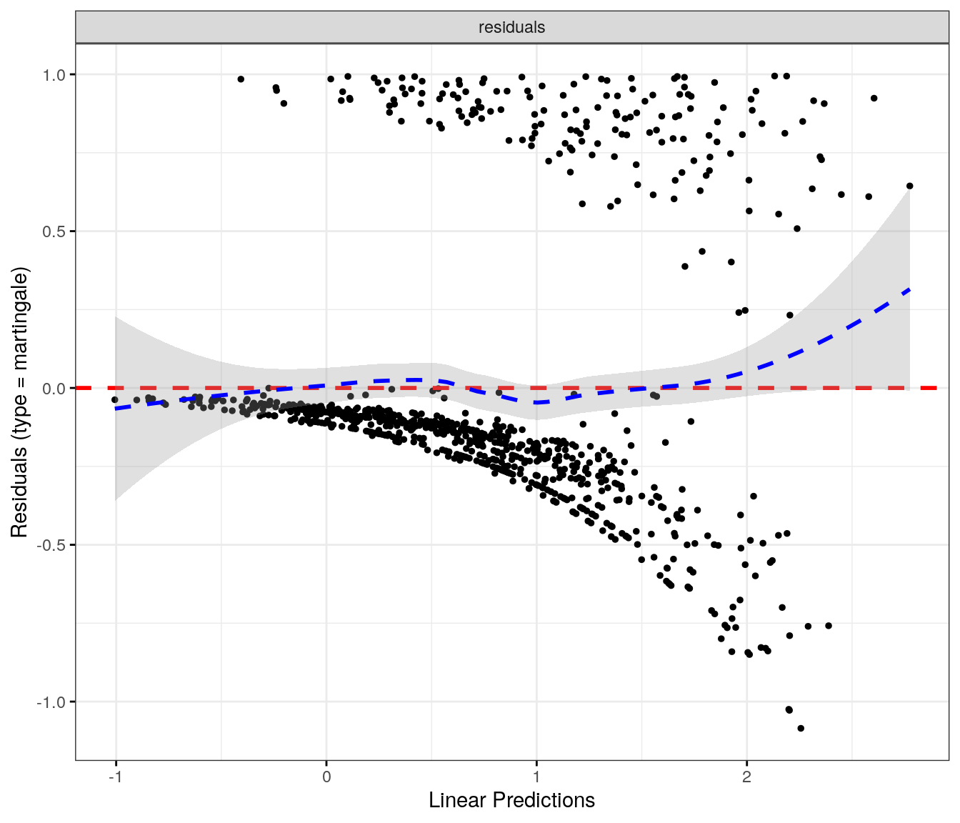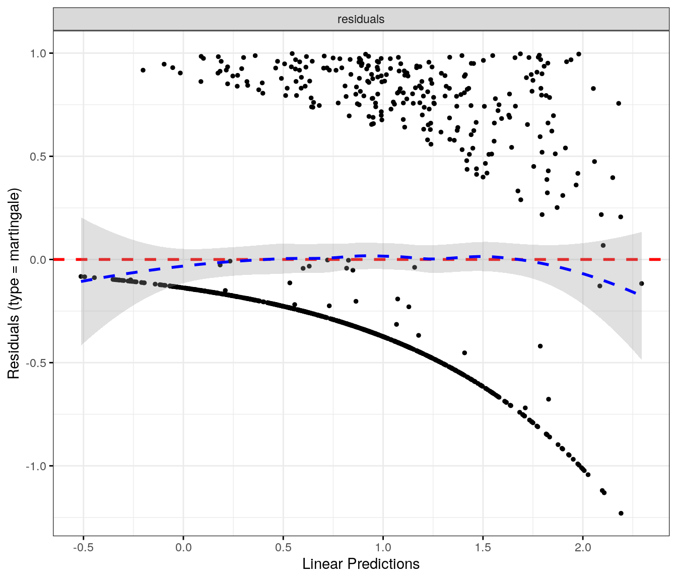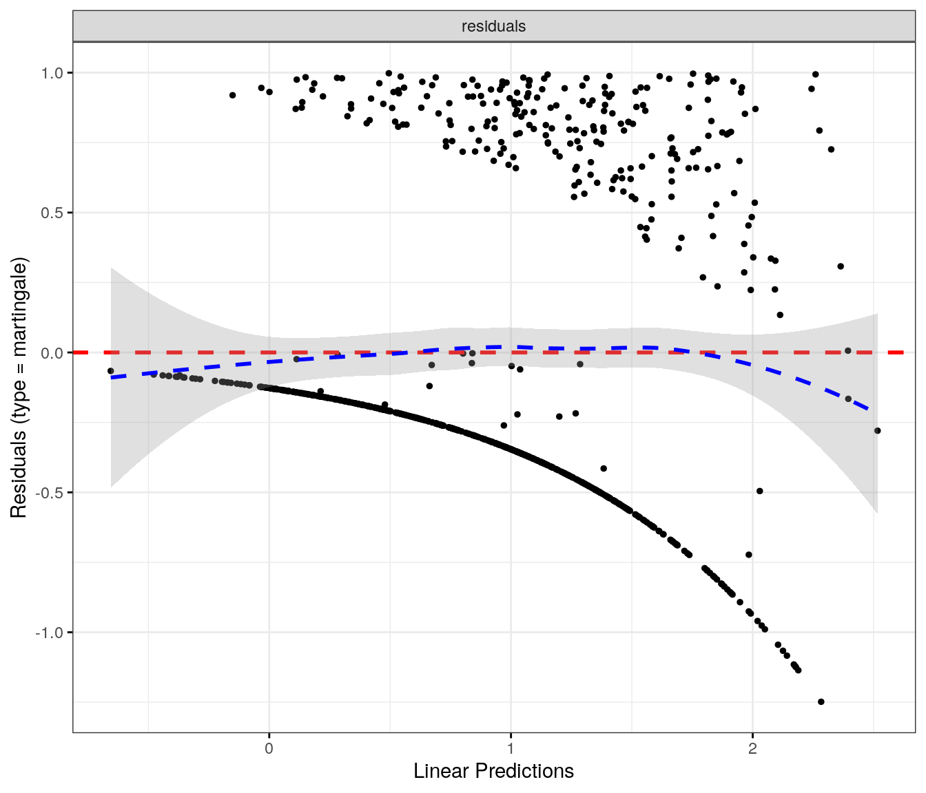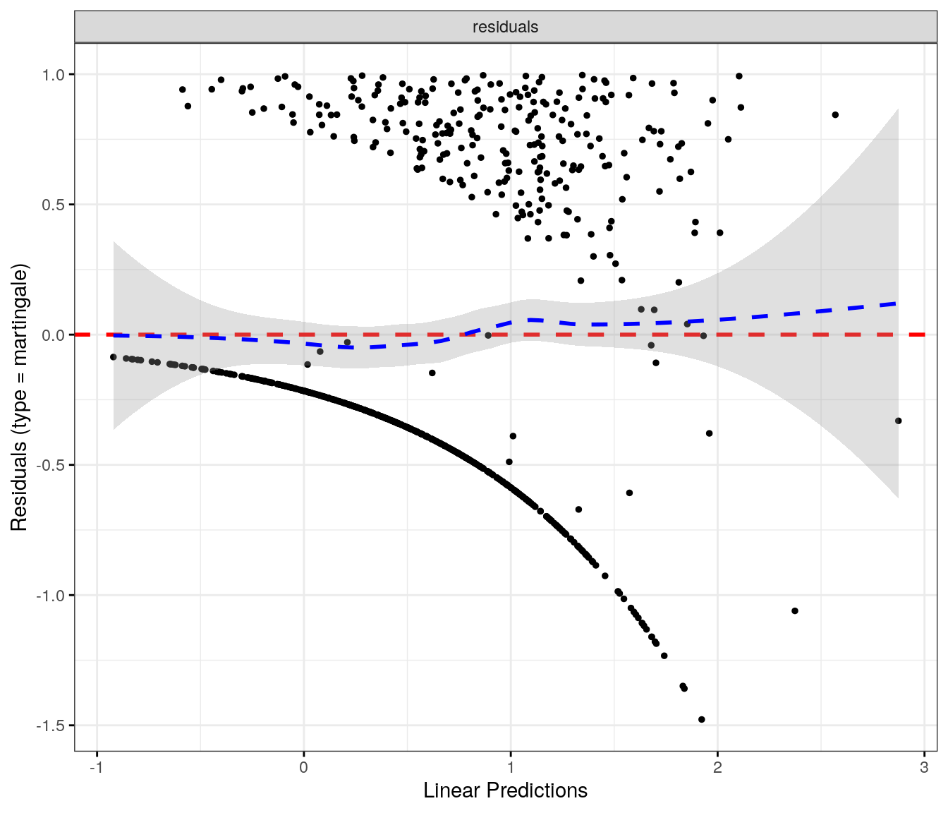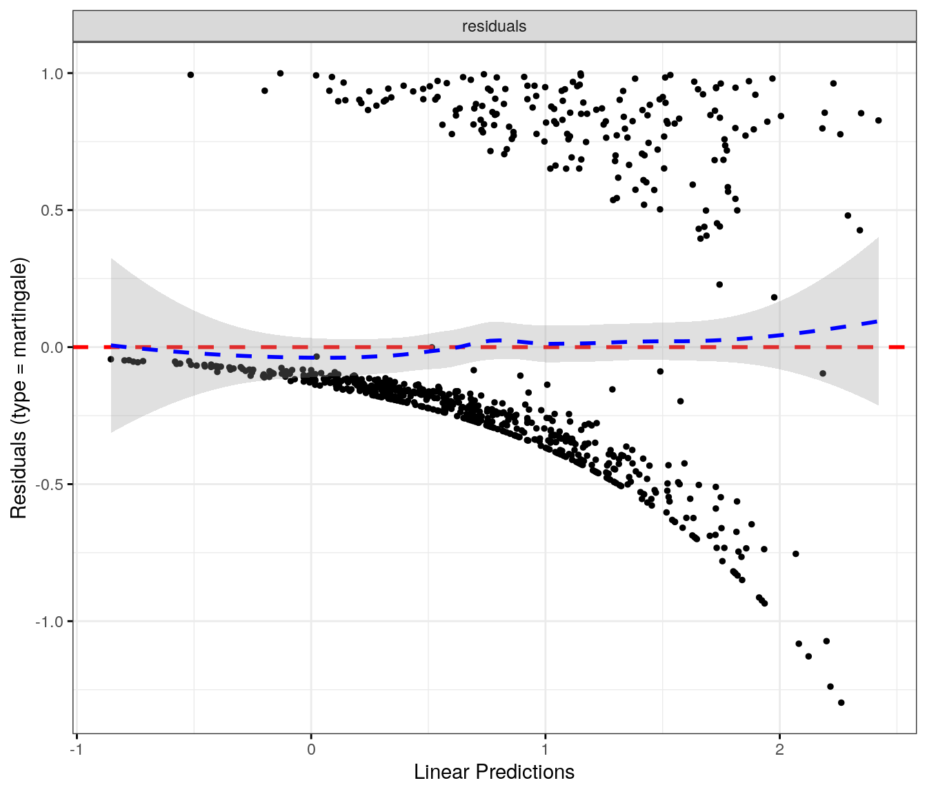 fit.me<-coxph(Surv(softflare_time, softflare)~Sex+IMD+cat+`IBD Duration`+BMI+Treatment+Age+CReactiveProtein+frailty(SiteNo), control =coxph.control(outer.max =20), data =flare.cd.df)invisible(cox_summary(fit.me))