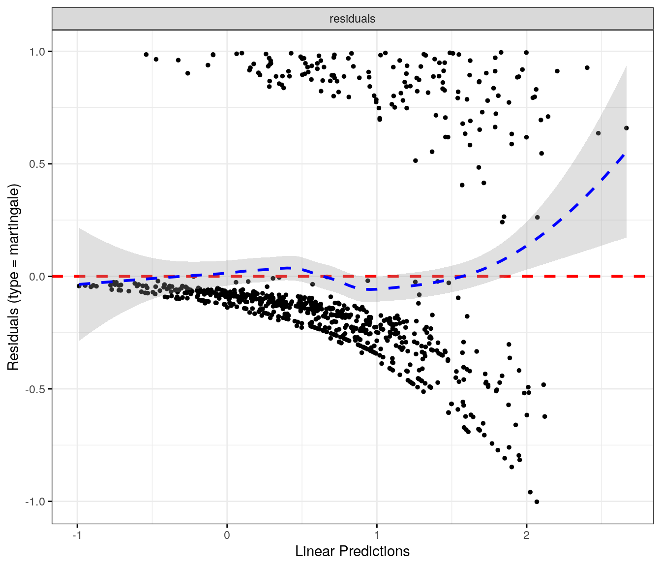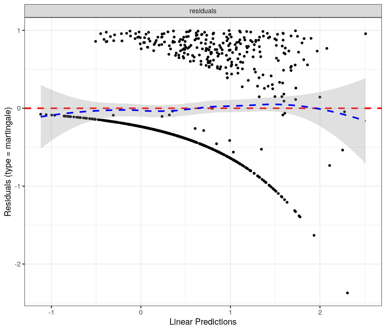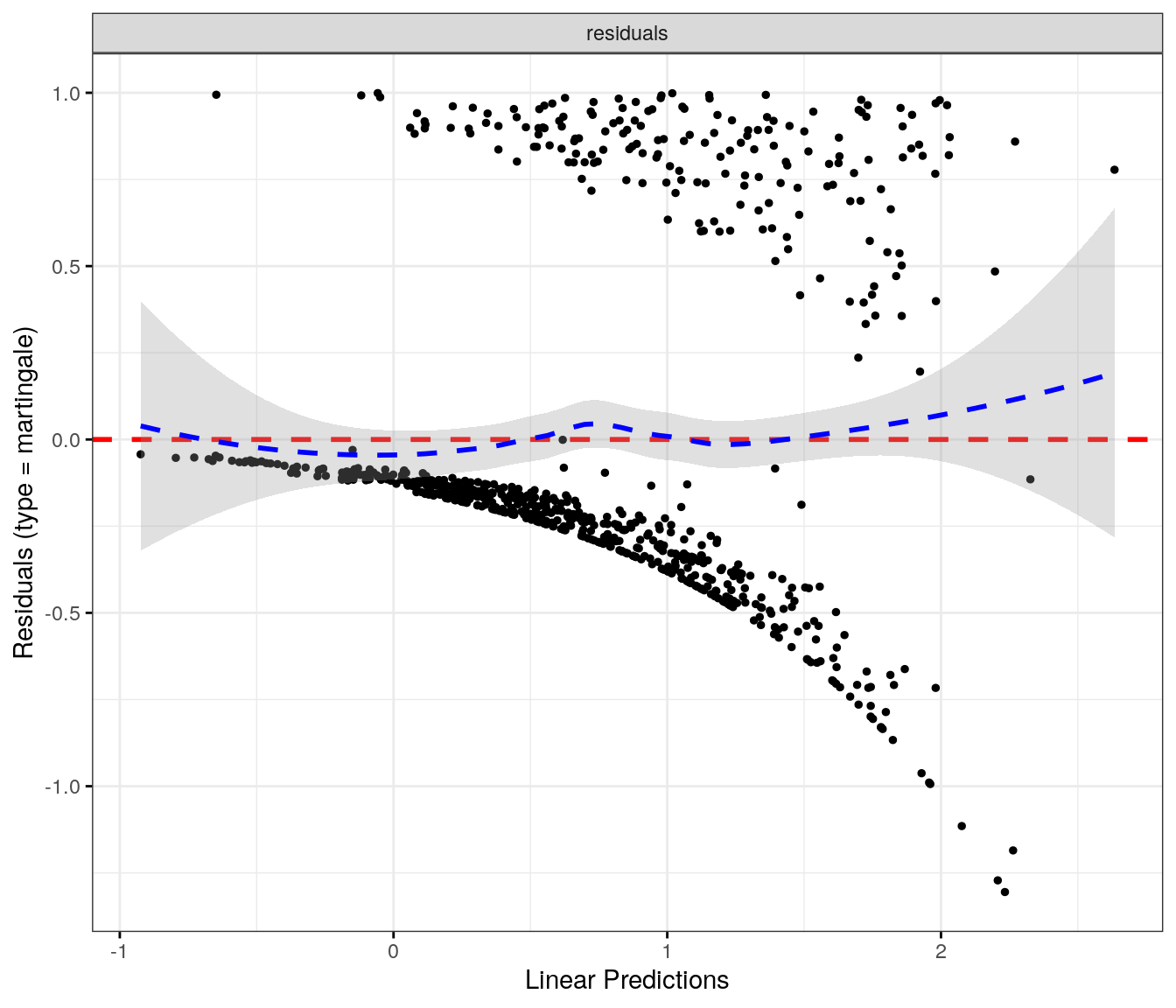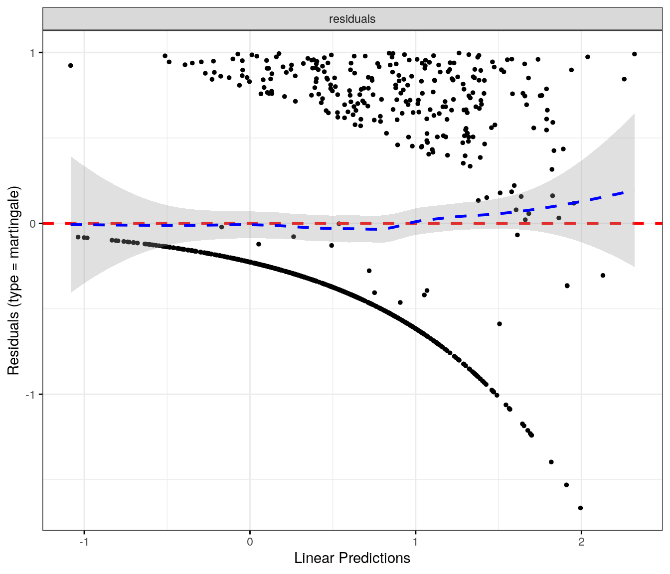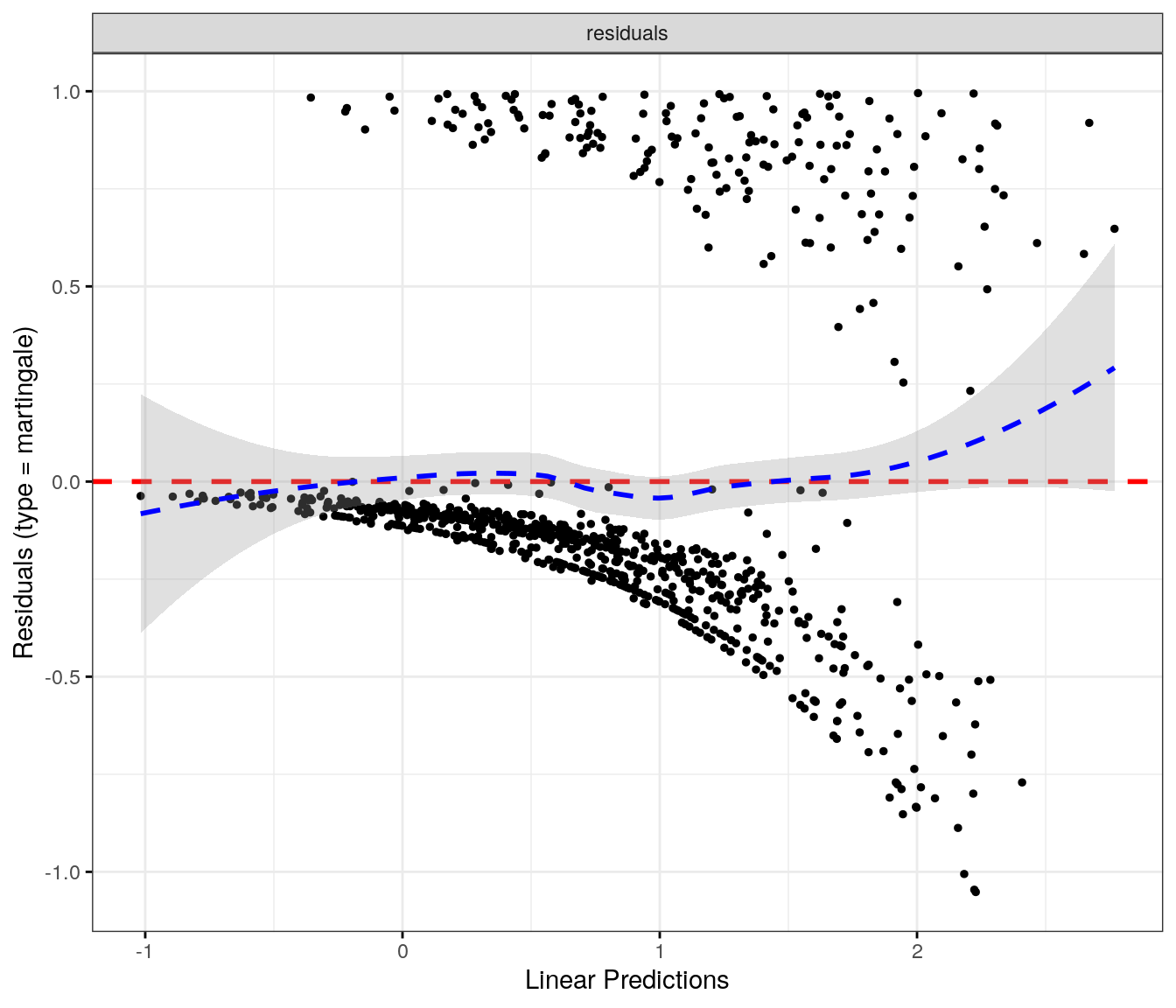 fit.me<-coxph(Surv(softflare_time, softflare)~Sex+IMD+cat+`IBD Duration`+BMI+Treatment+Age+CReactiveProtein+frailty(SiteNo), control =coxph.control(outer.max =20), data =flare.cd.df)invisible(cox_summary(fit.me))
