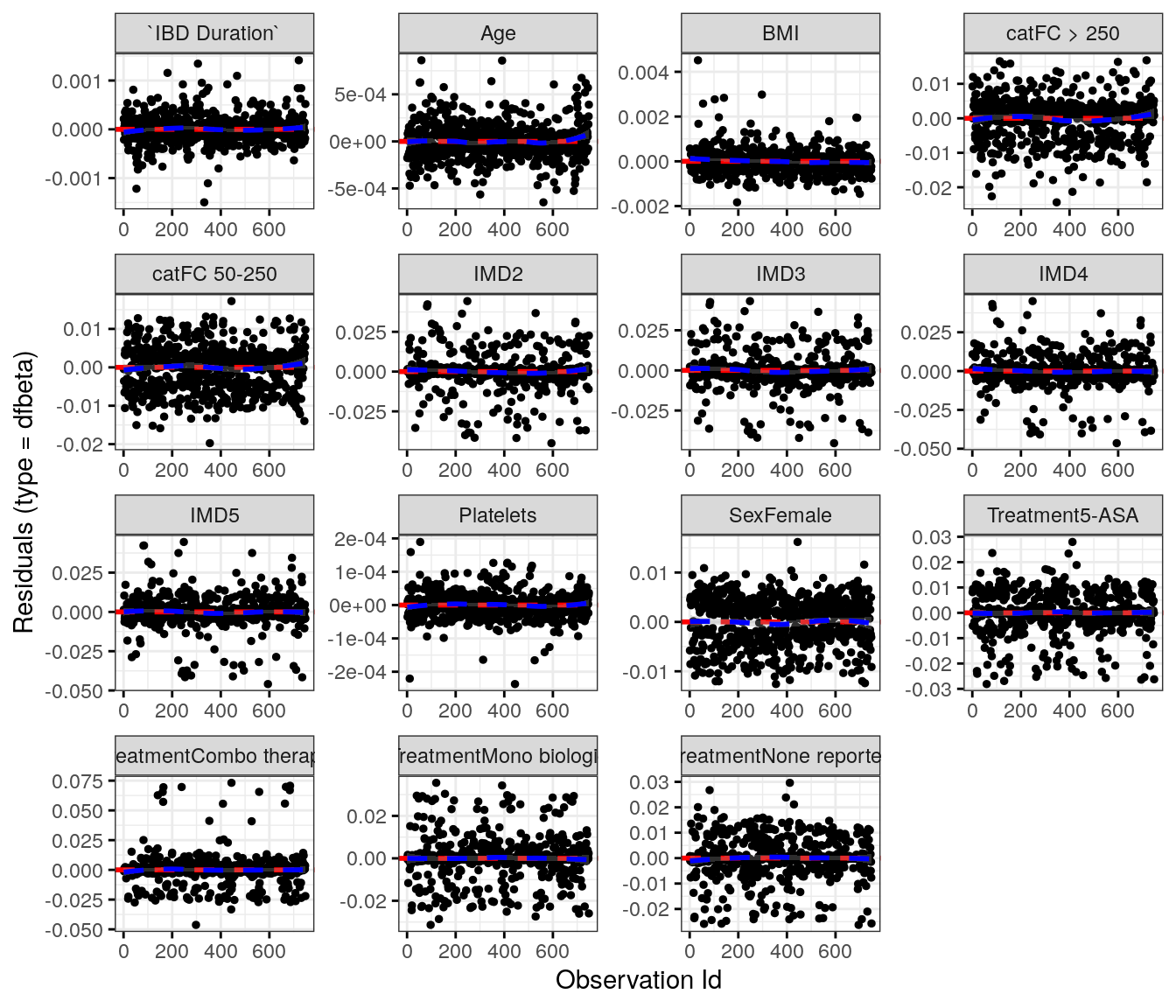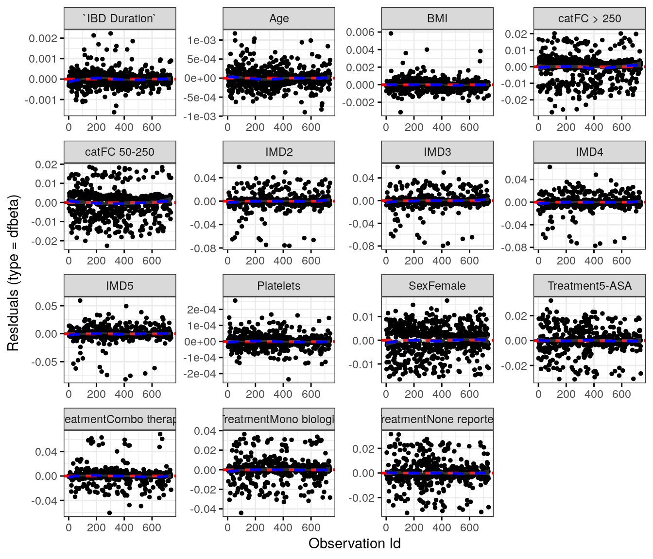 fit.me<-coxph(Surv(hardflare_time, hardflare)~Sex+IMD+cat+`IBD Duration`+BMI+Treatment+Age+Platelets+frailty(SiteNo), control =coxph.control(outer.max =20), data =flare.uc.df)invisible(cox_summary(fit.me))