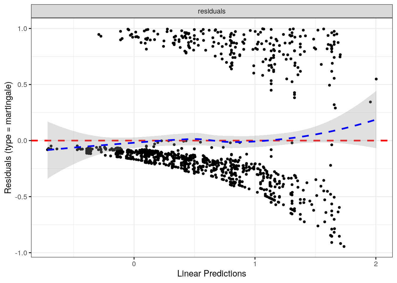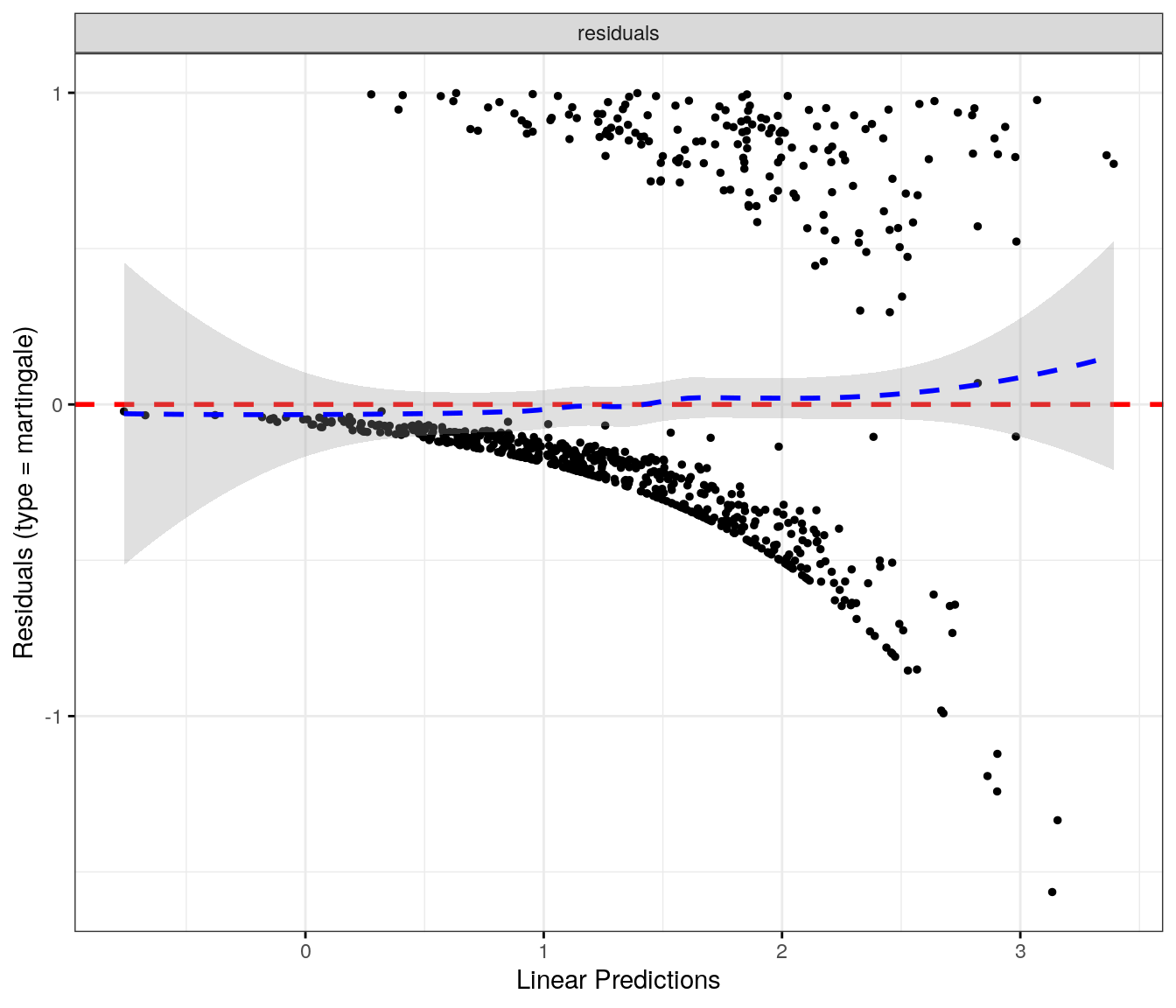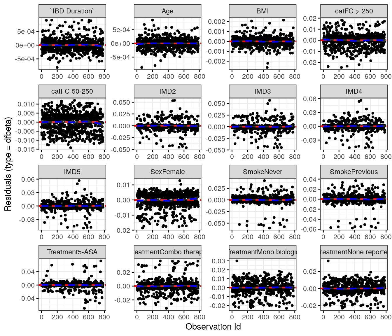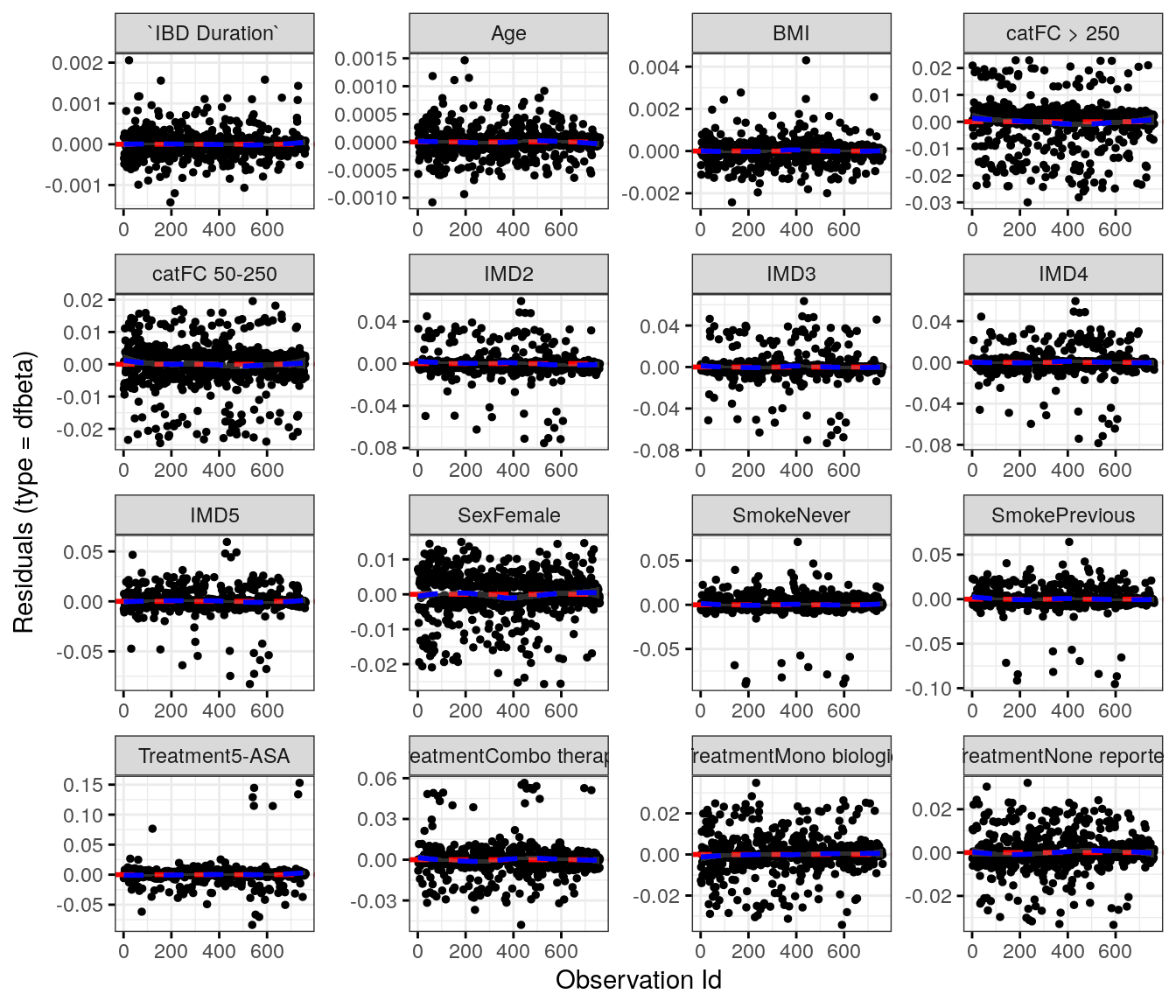 fit.me<-coxph(Surv(softflare_time, softflare)~Sex+IMD+cat+Smoke+frailty(SiteNo), control =coxph.control(outer.max =20), data =flare.cd.df, model =TRUE)cd.clin.forest<-get_HR(fit.me,c("SmokePrevious", "SmokeNever"))fit.me<-coxph(Surv(softflare_time, softflare)~Sex+IMD+cat+frailty(SiteNo), control =coxph.control(outer.max =20), data =flare.cd.df, model =TRUE)cd.clin.forest<-rbind(cd.clin.forest,get_HR(fit.me,c("SexFemale",paste0("IMD", seq(2, 5)),"catFC 50-250","catFC > 250")))invisible(cox_summary(fit.me))
