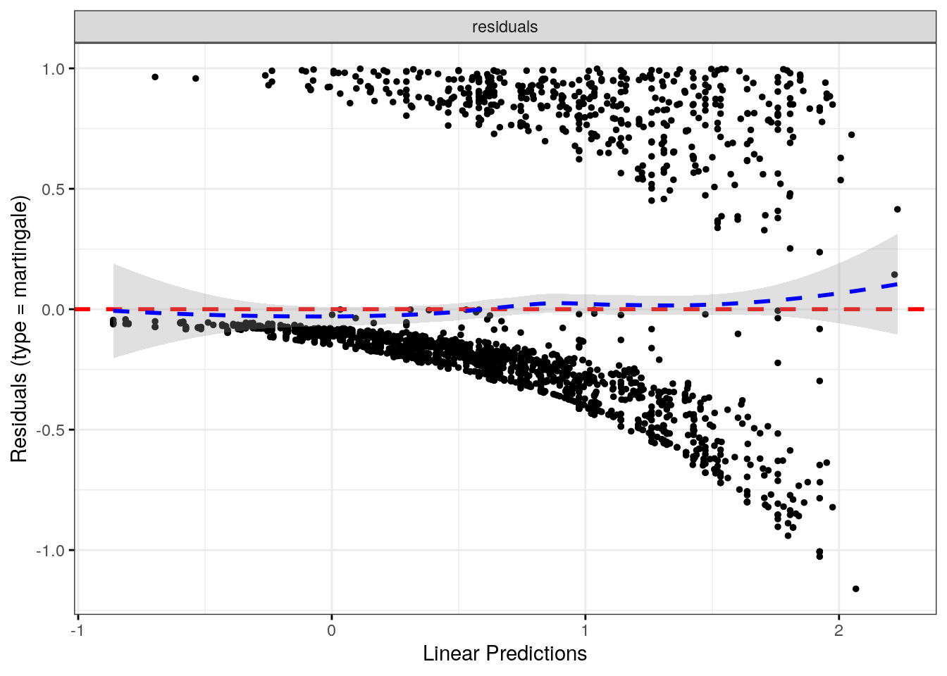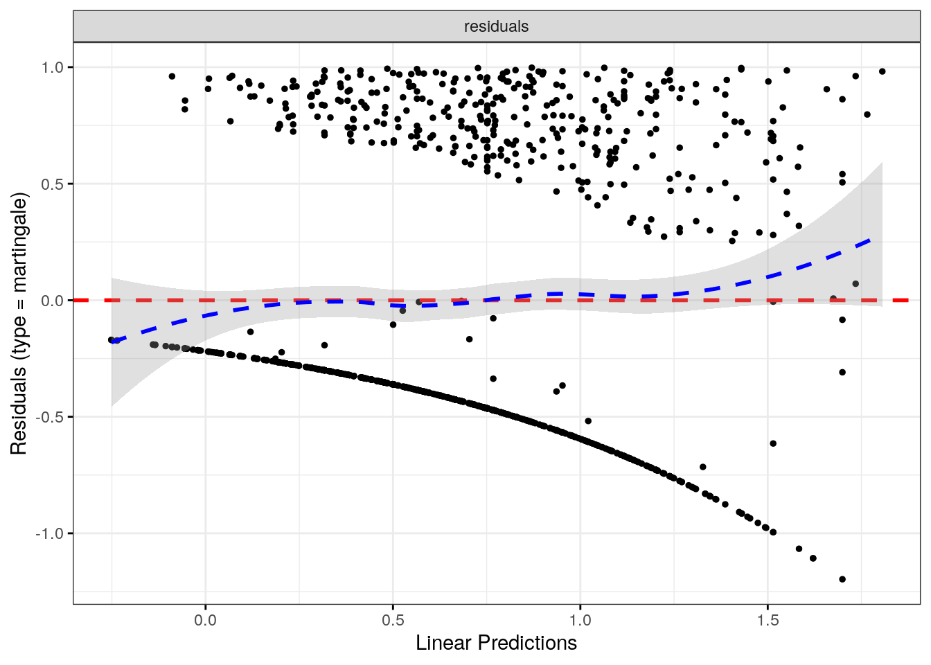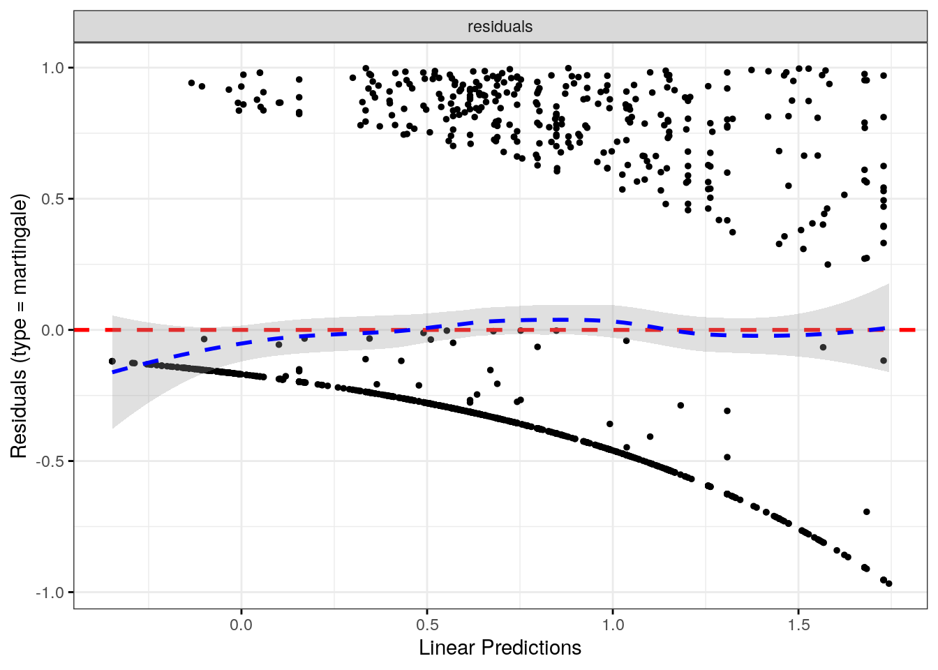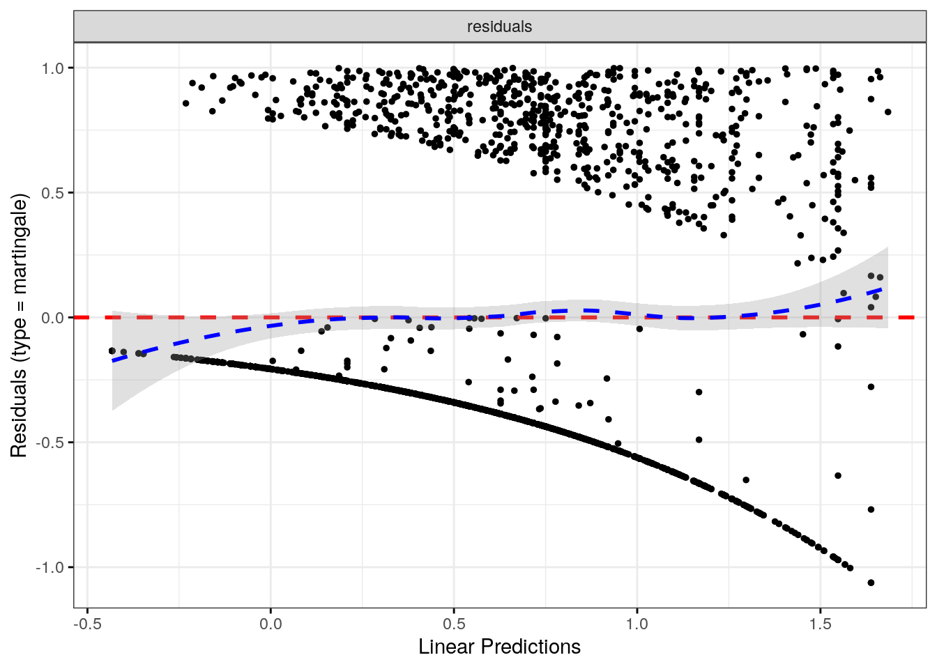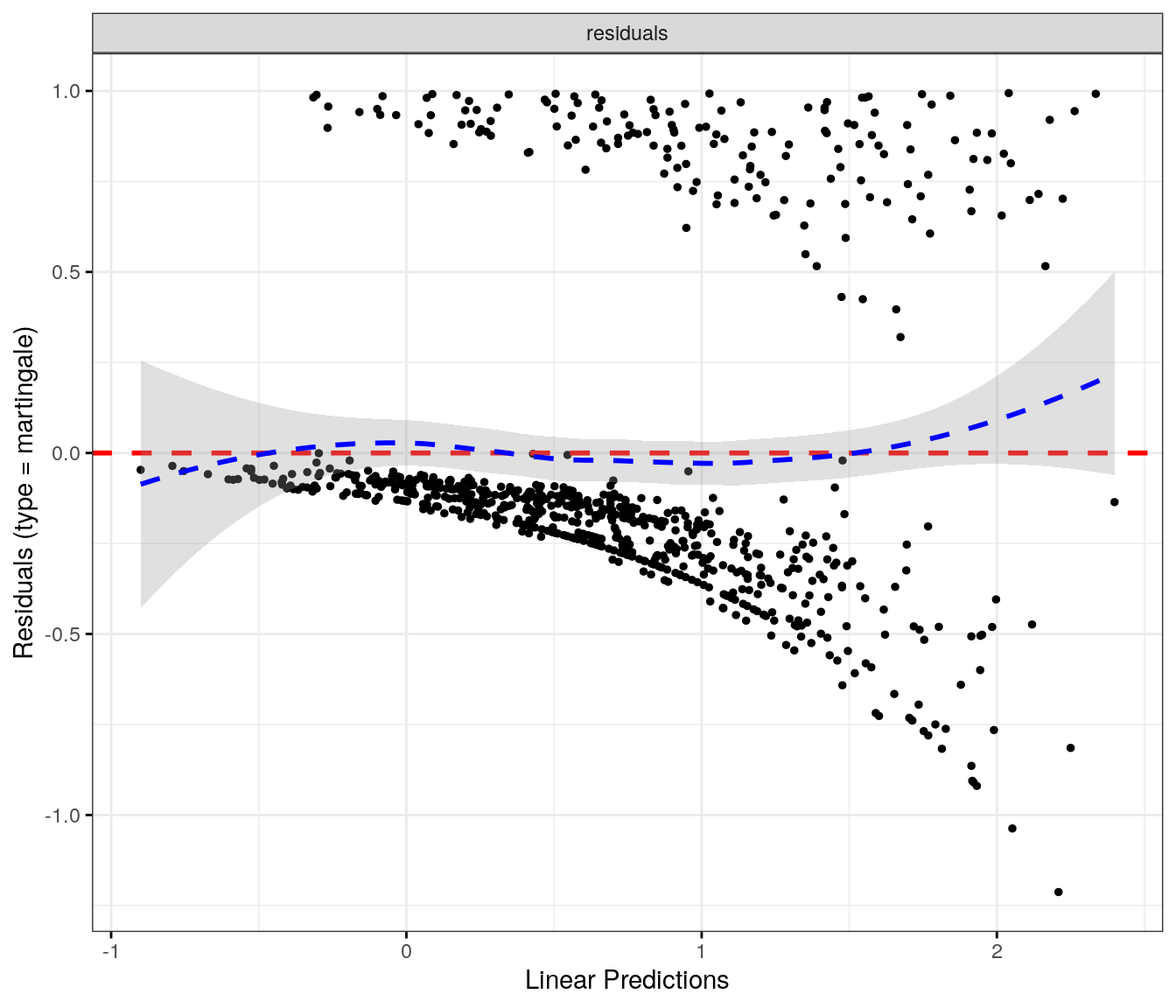fit.me<-coxph(Surv(softflare_time, softflare)~Sex+IMD+cat+Smoke+frailty(SiteNo), control =coxph.control(outer.max =20), data =flare.cd.df, model =TRUE)cd.clin.forest<-get_HR(fit.me,c("SmokePrevious", "SmokeNever"))fit.me<-coxph(Surv(softflare_time, softflare)~Sex+IMD+cat+frailty(SiteNo), control =coxph.control(outer.max =20), data =flare.cd.df, model =TRUE)cd.clin.forest<-rbind(cd.clin.forest,get_HR(fit.me,c("SexFemale",paste0("IMD", seq(2, 5)),"catFC 50-250","catFC > 250")))invisible(cox_summary(fit.me))