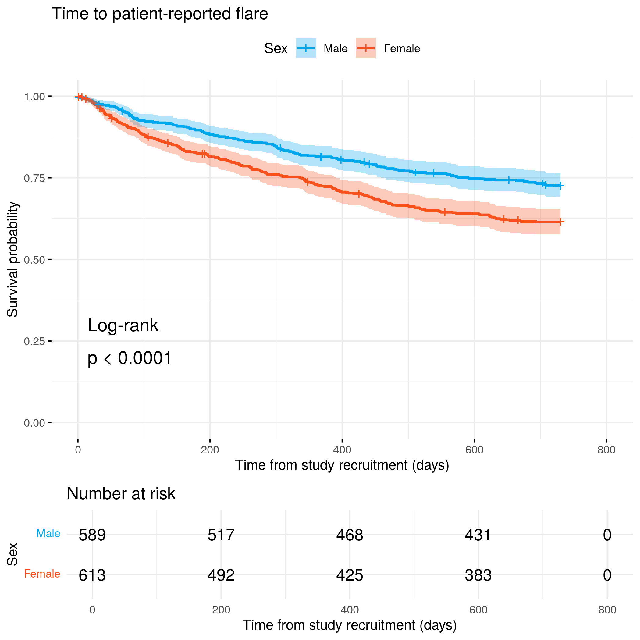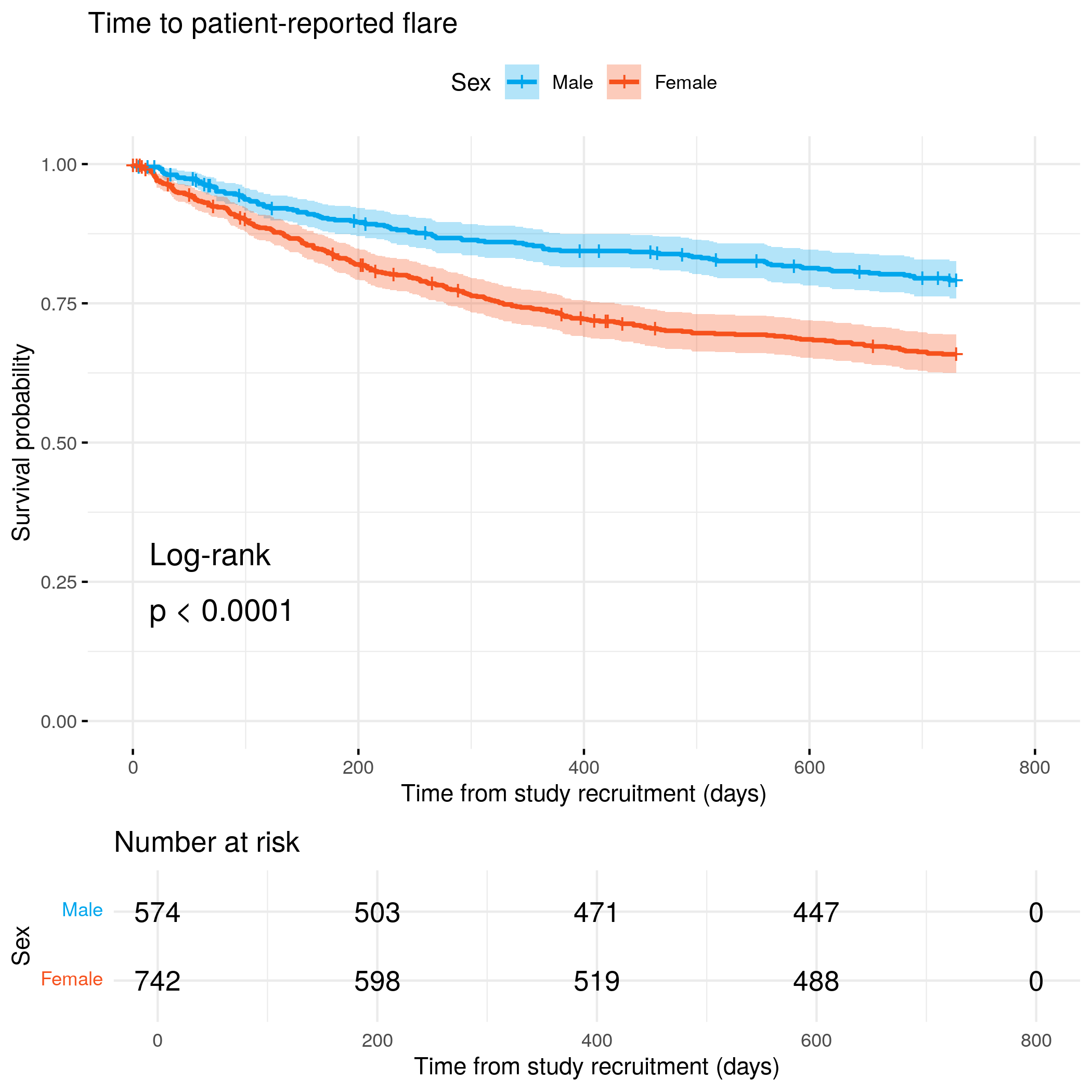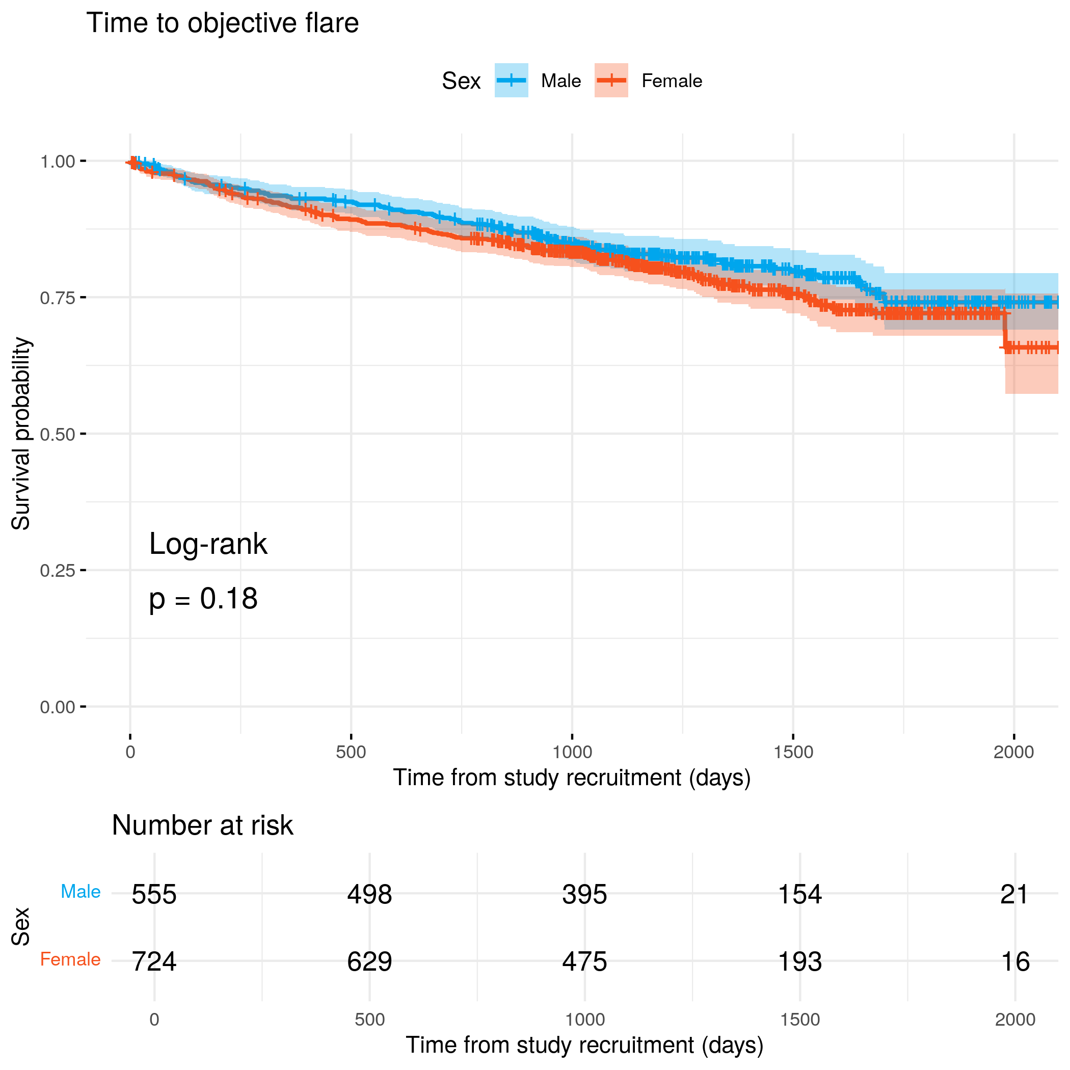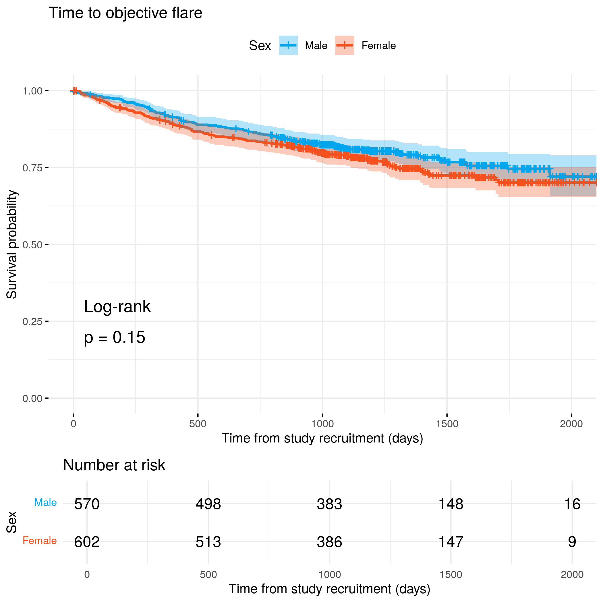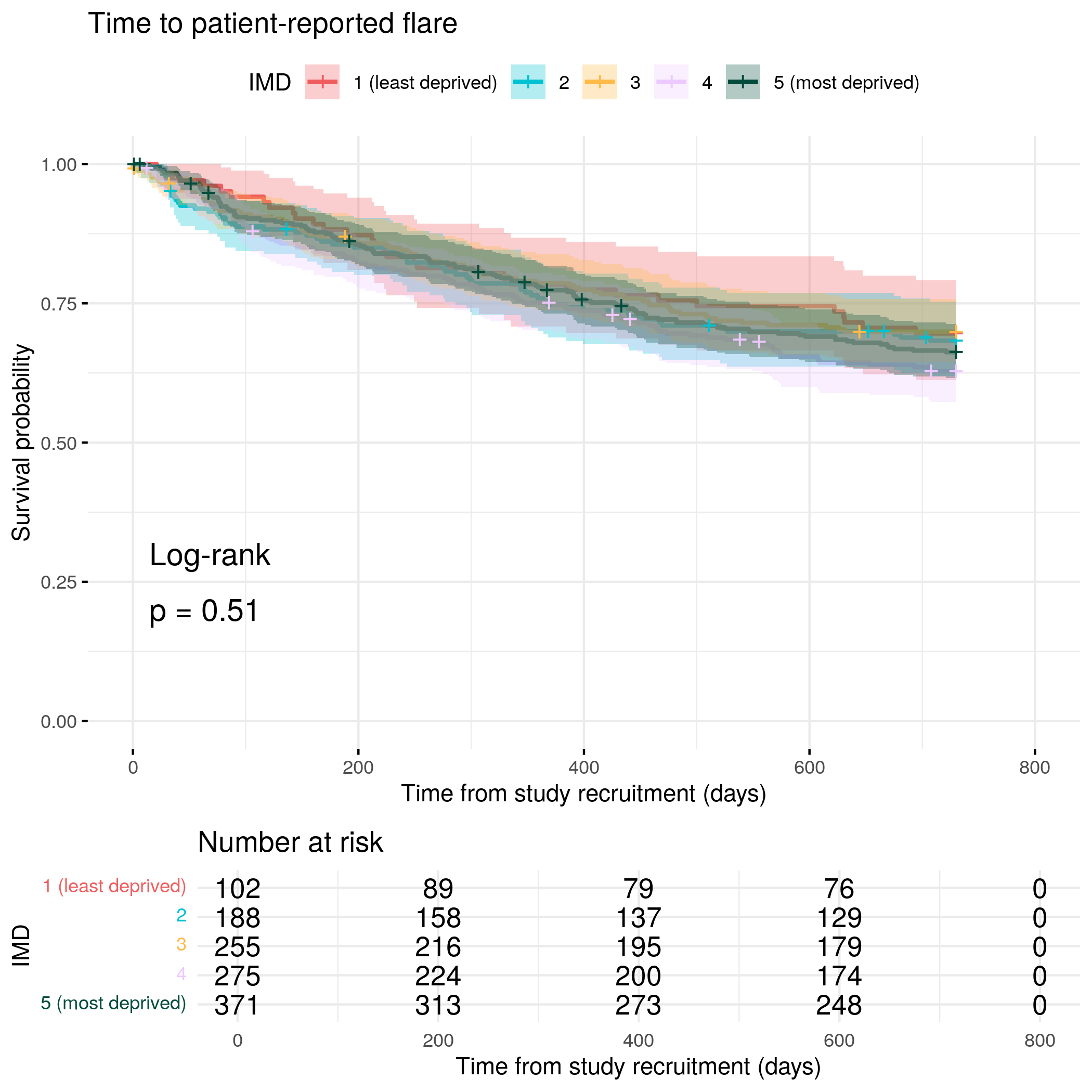 fit.me<-coxph(Surv(hardflare_time, hardflare)~Sex+IMD+cat+Smoke+frailty(SiteNo), control =coxph.control(outer.max =20), data =flare.cd.df)cd.hard.forest<-get_HR(fit.me,c("SmokePrevious", "SmokeNever"))fit.me<-coxph(Surv(hardflare_time, hardflare)~Sex+IMD+cat+frailty(SiteNo), control =coxph.control(outer.max =20), data =flare.cd.df)cd.hard.forest<-rbind(cd.hard.forest,get_HR(fit.me,c("SexFemale",paste0("IMD", seq(2, 5)),"catFC > 250")))invisible(cox_summary(fit.me))